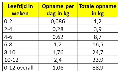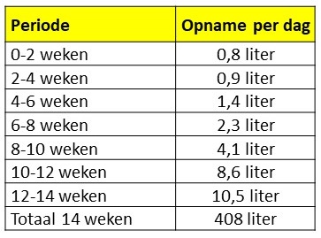 Tabel rechts: voorbeeld van een opnameschema voor krachtvoer door kalveren (Bron: Denkavit).