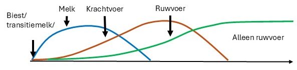 - Beperk de opname van ruwvoer in de eerste maand en stimuleer de opname van krachtvoer.;
