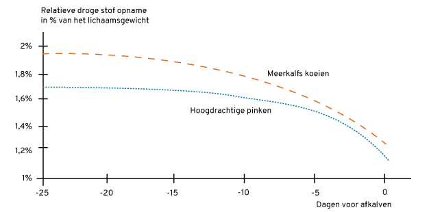 - In de laatste weken van de droogstand wordt de voeropname minder, de hormoonhuishouding verandert drastisch, de opmaat voor de negatieve energiebalans en een sterke vermindering van de weerstand.