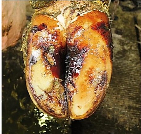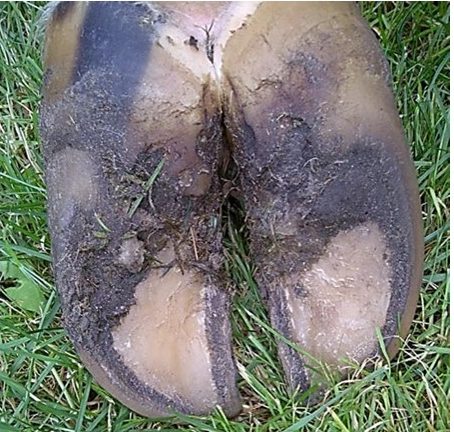 | Stinkpoot | Besmettelijke aandoening. Achterzijde van de klauw (balgebied). Woekering van de hoorn en kloven waarbij de huid ook mee doet. Necrose (rottings) geur. Trippelen en kreupelheid. | Veroorzaakt door Bacteroides nodosus en Fusobacterium necrophorum. | Insleep via aankoop Natte vloeren of plaatsen waar de koeien doorheen moeten lopen. Platte klauwen, lage verzenen, hoge lucht-vochtigheid in de stal, kiemdruk. |