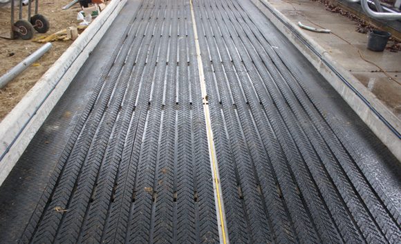 • Aantal doorsteken tussende ligboxen: per 16 tot 20 ligboxen een doorsteek plus aan het einde van de boxenrij;