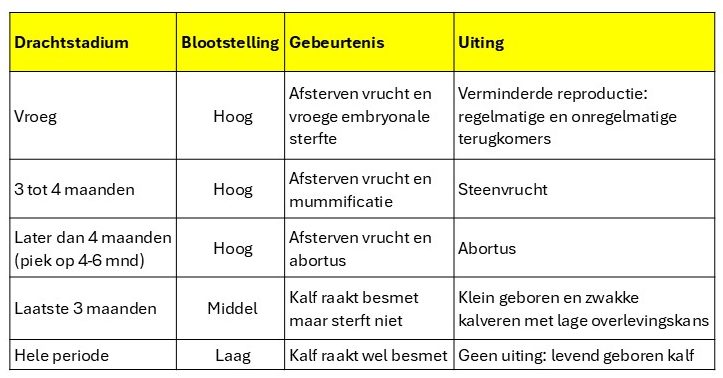 • Bij weerstandsvermindering, door bijvoorbeeld BVD, kan Neospora ineens tot uiting komt. Controleer dan ook op BVD.