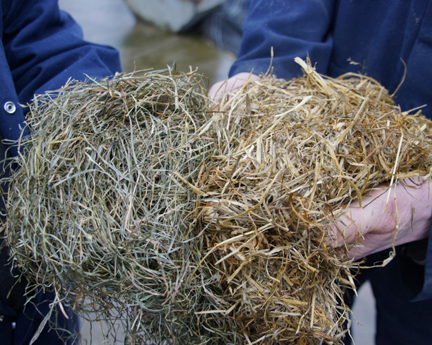 - Bij structuurrijke producten met een goed ADL-gehalte, vind je relatief veel structuurresten terug. Gehakseld koolzaadstro wordt nagenoeg niet verteerd en zie je dus terug in de mest;