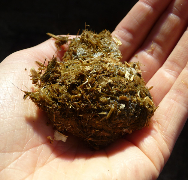 - Als de koe goed heeft herkauwd, dan zie je zeer fijne, korte (wollige) vezeltjes in de mest. Niet te verwarren met een te fijne structuur van het ruwvoer die voor een snellere passage en minder vertering zorgt;