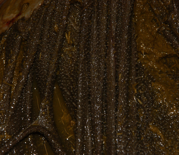 De binnenwanden van de pens, de netmaag en de boekmaag.