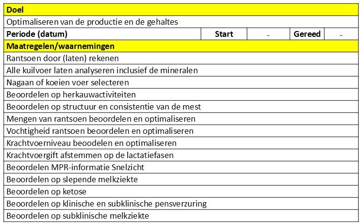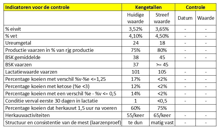 - Controleer regelmatig de conditie om tijdig bij te kunnen sturen. Gebruik daarvoor de conditiescorekaart. Zie www.duurzaammelkvee.nl/transitieperiode.