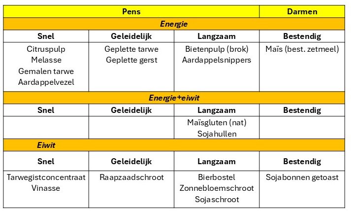 - In herstelfase is het van belang dat wat minder “snelle” energie uit suikers en zetmeel wordt gevoerd en wat meer “langzame” energie uit structuur;