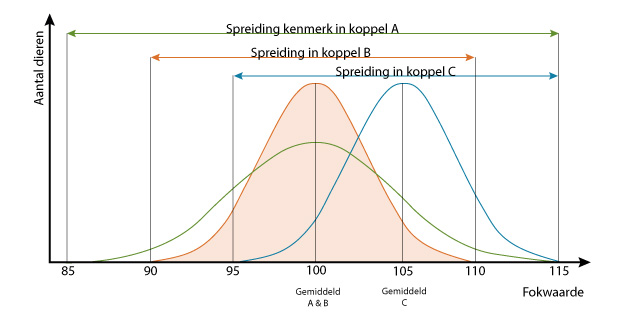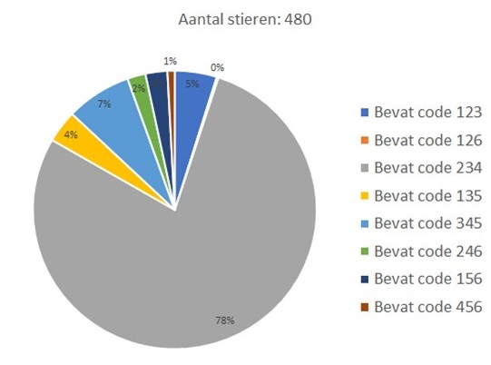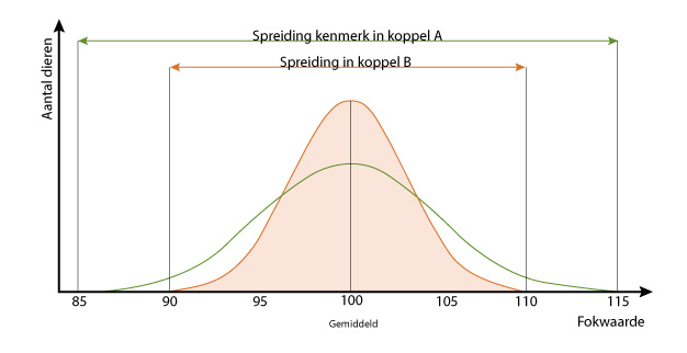 Om die methode voldoende betrouwbaar te maken zou je bij veel dieren moeten testen of de aanwezigheid van een specifieke merker (een zogenaamde SNP) ook inderdaad samengaat met een specifiek kenmerk. Dit is de zogenaamde referentiepopulatie. Door heel veel, tot wel 800.00 stuks, SNP’s verdeeld over de chromosomen te identificeren, en die te toetsen aan de kenmerken van heel veel dieren in de referentiepopulatie, kan vrij nauwkeurig worden bepaald welke merkers bij welke kenmerken horen. En dus ook welke genen die daarvoor verantwoordelijk zijn, in de buurt van welke specifieke merkers liggen. Want de kans is immers groot dat de genen die bij een specifieke merker liggen samen worden doorgegeven aan de nakomelingen. Daarmee kun je op basis van de aanwezige merkers, de genoomanalyse, de kans berekenen dat bepaalde kenmerken in een stier aanwezig zijn en kan de genoomfokwaarde worden berekend.
