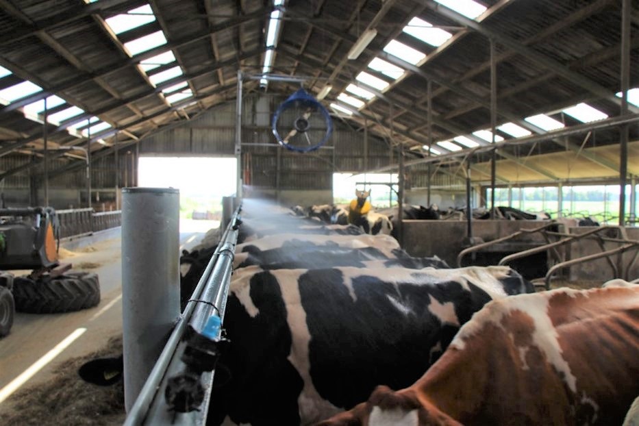In gebieden met gemiddeld warm klimaat en waar vaker hittestress voorkomt is veel ervaring opgedaan met het koelen van de koeien met behulp van water. Grofweg kun je twee manieren onderscheiden (in combinatie met ventilatoren met hoge luchtsnelheden): 1) Vernevelen en 2) Beregenen.