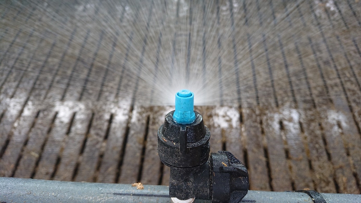 De koeien moeten in korte tijd tot op de huid nat worden, zonder dat de kop, de buik en de uier nat worden terwijl de ligboxen droog blijven.