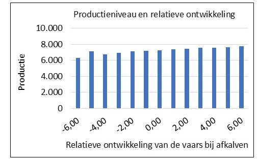 Figuur 4. De relatieve ontwikkeling van de vaars bij afkalven afgezet